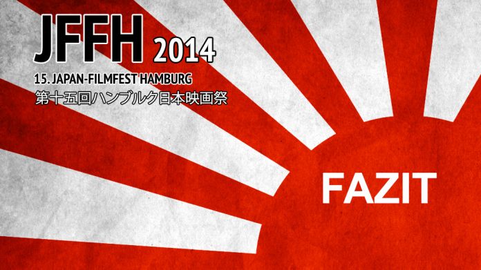 Der letzte Film des 15. Japan-Filmfest Hamburg 2014 lief vor fast einer Woche. Höchste Zeit also für ein Fazit. Und was soll ich sagen: Schön war’s. Es gab einige Überraschungen, aber auch einige Enttäuschungen. Was sich aber immer mehr zeigt, ist die zunehmende Professionalität des Festivals. Noch vor ein paar Jahren saß man zum Teil mit einer Handvoll Leuten in einem kleinen Raum mit einer kleinen Leinwand und hat sich kleine Schmuckstücke in nicht sonderlich guter Qualität angeguckt. Doch aus den ganzen kleinen Sachen werden immer größere. Und dennoch bleibt das Festival nah am Publikum.