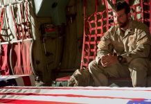 Was war Chris Kyle für ein Mensch? Google geizt nicht mit Berichten von seinen mehr als nebulösen Statements über die getöteten Iraker, welche er als „Wilde“ bezeichnete. Zudem soll er viel Spaß an seinem Job gehabt haben und besorgte sich die Bestätigung für sein richtiges Handeln von seinen Kameraden. Diese feierten den scheinbar abgeklärten Sniper, wenn er von den Dächern über sie wachte. Wo in dem ausgezeichneten „The Hurt Locker“ noch der kriegerische Adrenalin-Kick für den Protagonisten zählte, ist es für Kyle eine Sache der Ehre und leicht verklärter Vaterlandsliebe. Zugegeben, in manchen Situationen des Films schießt Kyle ganz locker, ohne viel Aufhebens die Feinde ab; ob von hinten in den Rücken spielt keine Rolle. Dann sind gerade die ruhigen, panoramaartigen Szenen, wo Kyle lange durch das Zielfernrohr blickt und ein Kind in das Visier nimmt, umso mehr als Gegenstück zu den anderen beinah beiläufigen Kills zu sehen. Hier weht dann doch mit Wohlwollen ein Hauch kritischer Wind über die Schauplätze des mörderischen Gewühles im Sand des Nahen Ostens. Ansonsten werden die Iraker eher monodimensional als Schlächter und hinterhältige Blender vorgeführt, die von einem vielleicht vom Irrglauben, das Richtige zu tun, geleiteten patriotischen Killermaschine getötet werden. Chris Kyle, nach seiner aktiven Zeit beim Militär als Ansprechpartner und Betreuer für Veteranen zuständig, wurde dann ausgerechnet von einem psychisch labilen heimgekehrten Kamerad auf den Schießstand erschossen.