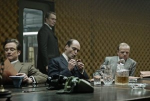 Dennoch ist es keine One-Man-Show für Oldman, denn der Rest der Besetzung kann mithalten. Obgleich viele altbekannte britische Gesichter im Film zu finden sind, verdienen zwei junge Talente hier eine besondere Erwähnung. Benedict Cumberbatch als Smileys Helfer Guillam ist eines der wenigen emotionalen Anhaltspunkte dieses Films. An seinem Charakter sieht man, was dieser Job einem abverlangt und welche Auswirkungen er auf den Menschen in allen Bereichen seines Lebens hat. Tom Hardy, der dem breiten Publikum durch seinen Auftritt in Inception auffiel und bald als Bösewicht Bane im dritten Batman Abenteuer von Christopher Nolan zu sehen sein wird, stellt hier als ein so genannter „Skalpjäger“ einen scharfen lebendigen Kontrast zu den sonst ruhigen und reservierten Geheimdienstlern. Auch er zeigt hier eine ungemein menschliche Seite, die wohl den Älteren in diesem Geschäft bereits abhanden kam. Ferner sollte man noch Colin Firth erwähnen, dessen aalglatte Performance hier in keiner Weise an seinen Auftritt im Oscargewinner des letzten Jahres, The King’s Speech, erinnert. Dies sind nur einige der beeindruckenden Performances in diesem Film. Leider erhalten nicht alle der großartigen Schauspieler die Gelegenheit, ihr Talent unter Beweis zu stellen. Das verbietet einfach die Komplexität der Story und die schiere Menge an wichtigen Charakteren. Darunter leidet vor allem Ciarán Hinds.