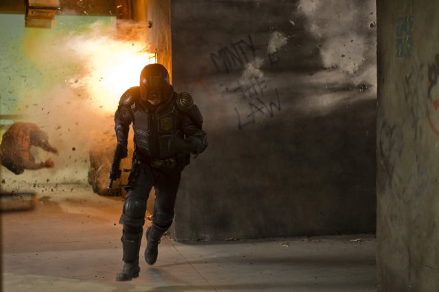 Die Drehbuchvorlage zu dem Spektakel stammt übrigens aus der Feder von Alex Garland, der neben seinen Arbeiten mit Regisseur Danny Boyle („28 Days Later“, „Sunshine“) auch interessante Romane wie „Der Strand“ oder „Manila“ verfasst hat. Als Erzähler hat er sich mit „Dredd 3D“ ganz sicher keinen Gefallen getan. Die Story wirkt so, als habe man John Carpenters klaustrophobischen Neo-Western „Assault“ nach dem „John Rambo“-Schema umgestaltet. Um das zu schaffen, müssen natürlich im Verlauf die ganz schweren Geschütze aufgefahren werden. Da wird dann die halbe Hütte dem Erdboden gleichgemacht und nur die Judges scheinen noch robuster als das massive Gemäuer zu sein. Schauspielerisch sollte man wohl nicht viel von dem Werk erwarten. Ob nun Stallone oder Urban den Mund verzieht, ist unterm Strich egal. Hauptsache, die Waffe sitzt fest in der Hand. Neben der blassen (aber hübschen) Olivia Thirlby kann lediglich Lena Headey als wahres Miststück ein paar Akzente setzen.