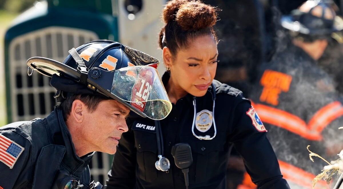 Home "9-1-1: Lone Star": Deutsche Free-TV-Premiere der 3. Staffel steht fest Rob Lowe und Gina Torres in "9-1-1: Lone Star" © 2022 FOX Broadcasting Co.