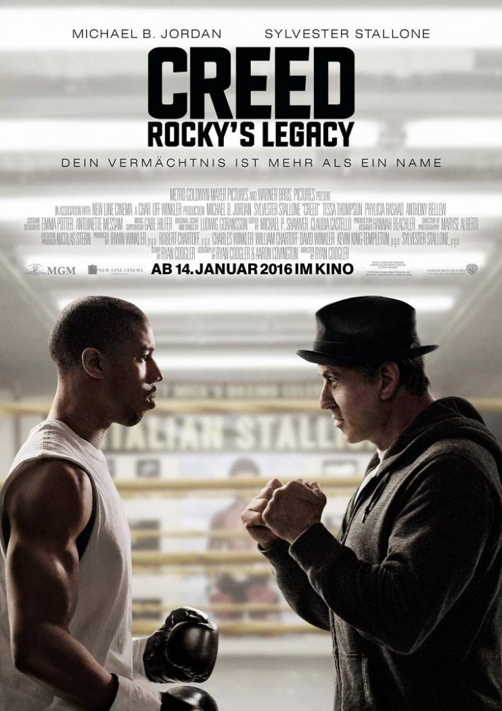 Es gibt also wirklich jeden Grund, sich auf den Film zu freuen. Leider müssen wir uns noch fast zwei Monate gedulden. Unten findet Ihr ein neues deutsches Filmplakat zu Creed, auf dem Stallone mehr im Mittelpunkt steht als auf den erste beiden Plakaten. Sollte Creed an den Kinokassen erfolgreich sein (und momentan ist das sehr wahrscheinlich), so sind bereits zwei Sequels mit Michael B. Jordan in Planung. Ob Stallone in diesen wieder dabei sein wird, ist jedoch unbekannt.