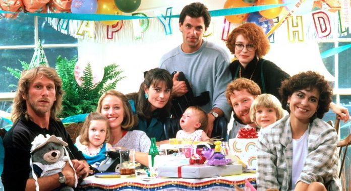 Peter Horton, Rachel Nagler, Patricia Wettig, Mel Harris, Timothy Busfield, Jason Nagler, Polly Draper, Ken Olin und Melanie Mayron in "Die besten Jahre" (1987) © MGM Television