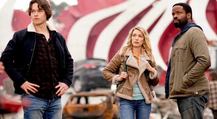 Jack Martin, Natalie Zea und Chiké Okonkwo in "La Brea" © 2021 NBCUniversal Media, LLC