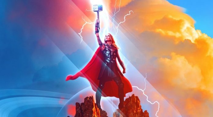 Der erste Teaser-Trailer zu Love and Thunder endete mit einer Aufnahme von Jane als The Mighty Thor. Nun rückt auch das brandneue alternative Teaser-Poster zu dem Film Portmans Charakter in den Vordergrund. Es ist im Prinzip das gleiche Metal-Albumcover-Motiv wie beim ersten Plakat, bloß mit Jane statt Thor und einer clever abgeänderten Tagline über dem Filmtitel: