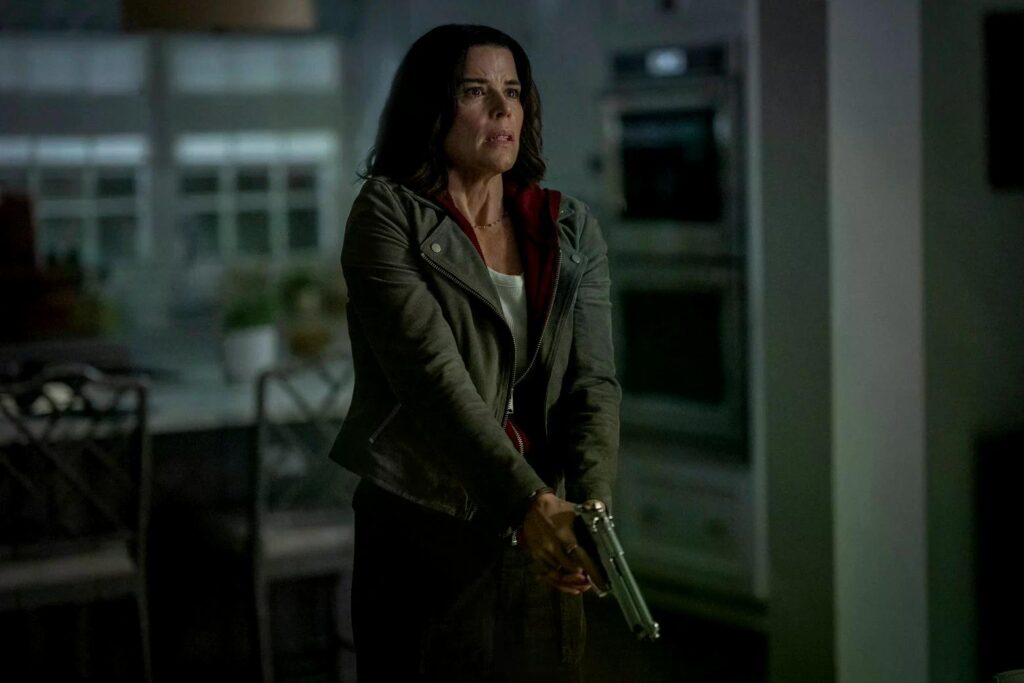 An Nostalgie soll es in „Scream 7“ auch nicht mangeln. Ein jugendlicher Besuch durch das Schlafzimmerfenster, die von Traumata befleckte Lederjacke der Mutter und schmerzhafte Erinnerungen an die Vergangenheit prägen das Werk. Doch anders als Prepper-Oma Laurie Strode in David Gordon Greens misslungener „Halloween“-Trilogie, ist aus Sidney keine verbitterte Kämpferin geworden, die ihren Nachwuchs lediglich auf dunkle Zeiten vorbereitet hat. Ihre Filmtochter fragt im Verlauf immer wieder, warum sie eigentlich den Namen einer Toten trägt. Sidneys letztliche Erklärung gehört – ähnlich wie der schockierende Tod Randys in Teil zwei oder Deweys fataler Kampf in Teil fünf – zu den emotionalen Volltreffern der Reihe.