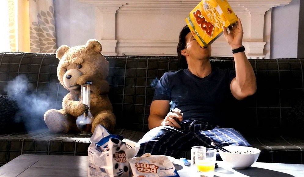 In seinem ersten Spielfilm „Ted“ erzählt „Family Guy“-Schöpfer Seth MacFarlane eine Buddy-Geschichte der etwas anderen Art. Der Mittdreißiger John Bennett (Mark Wahlberg) hat inzwischen einen Job und seine attraktive Freundin Lori (Mila Kunis) – seinen Ted hat er jedoch immer noch nicht zu den anderen Spielsachen in den Keller geräumt. Wie könnte er auch, verbringt er doch zu gern seine Freizeit mit diesem gemeinsam auf der Couch, um zu kiffen und „Flash Gordon“ zu schauen. Lori liebt John, aber der großmäulige Bär ist ihr so langsam ein Dorn im Auge – hält dieser ihren Partner stets davon ab, den nächsten Schritt auf der Beziehungs- und Karriereleiter zu starten. Schweren Herzens sucht also der erwachsene Kindskopf seinem plüschigen Kameraden ein neues Heim und eine Anstellung in einem Supermarkt. Und wären da nicht noch Loris penetranter Vorgesetzter Rex (Joel McHale), der psychotische Familienvater Donny (Giovanni Ribisi) mit seinem ebenfalls massiv gestörten Sohnemann Robert (Aedin Mincks), die zu gern Ted ihr Eigen nennen würden, sowie ein koksender Sam J. Jones (für die Leser, die die frühen Achtziger verpasst haben: das ist der Schauspieler, der Flash Gordon im gleichnamigen Film verkörpert hat), es hätte ein fantastischer Neuanfang für das Paar werden können. Richtig, wäre da nicht der Konjunktiv im Weg …