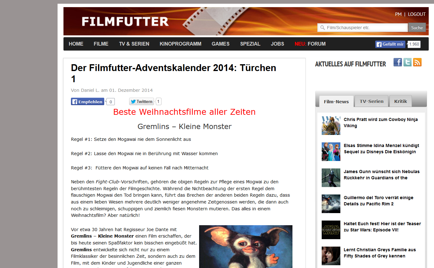 Filmfutter Adventskalender Türchen 1
